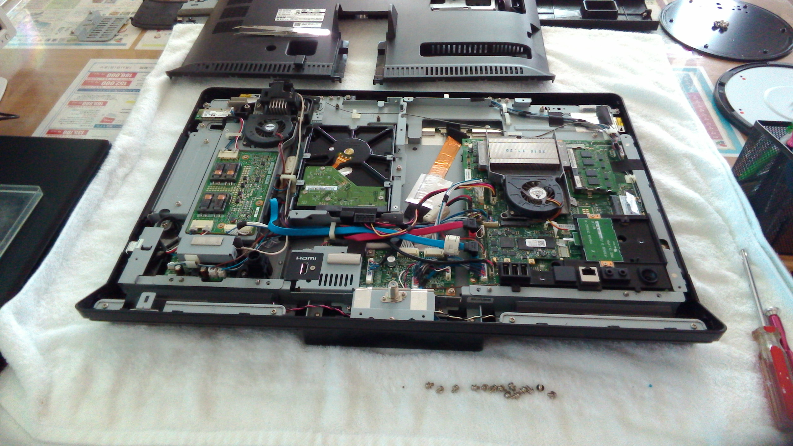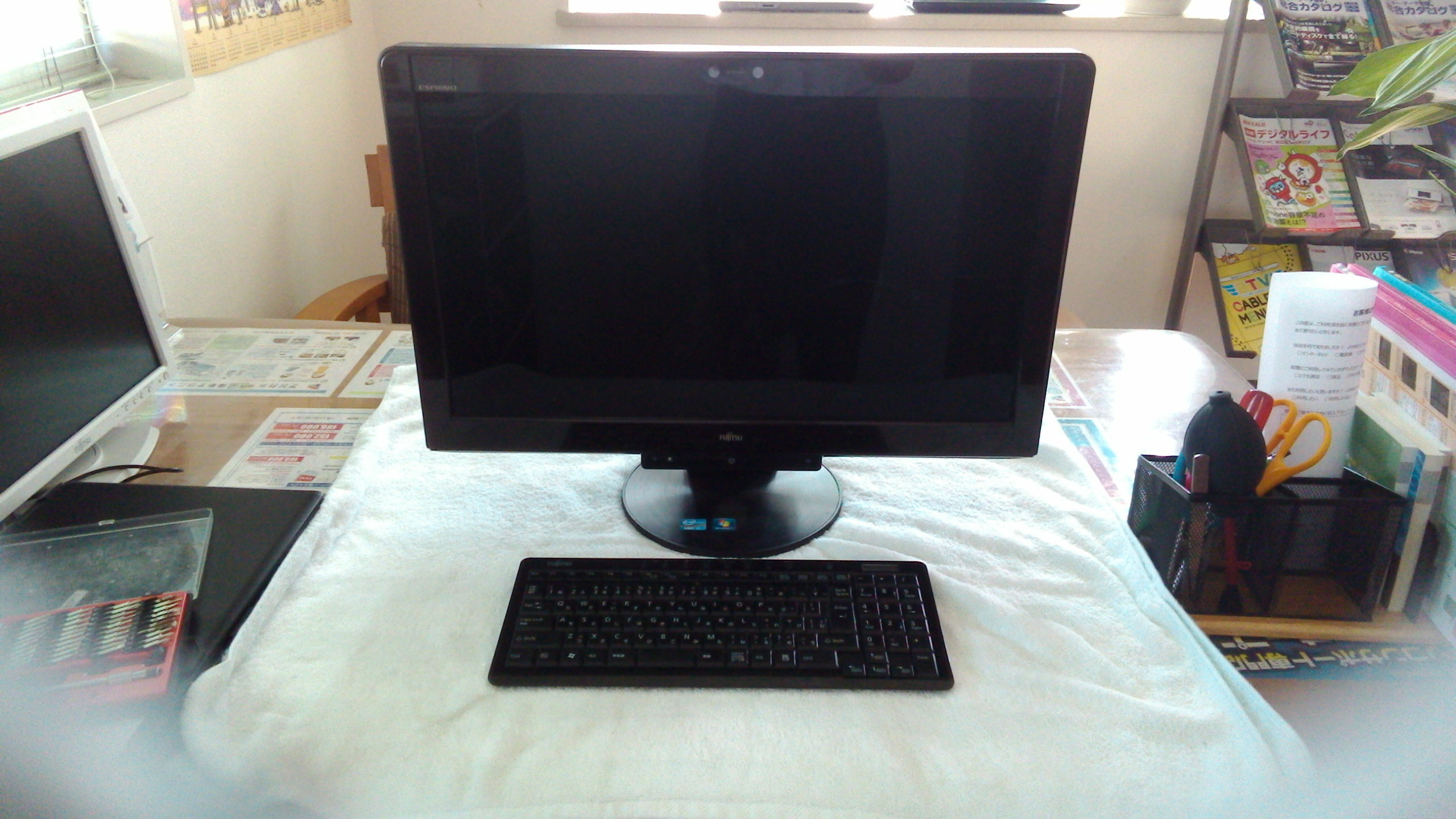 今日はご近所様からパソコンの内部からガラガラと音がする、たぶんファンの音だと思うけど見てもらえませんかと、持ち込みご来店下さいました。こちらのパソコンは2011年夏モデルの液晶一体型でWindows7が搭載された高性能、高スペックのマシンですので、まだまだ現役でバリバリ使えるPCです。