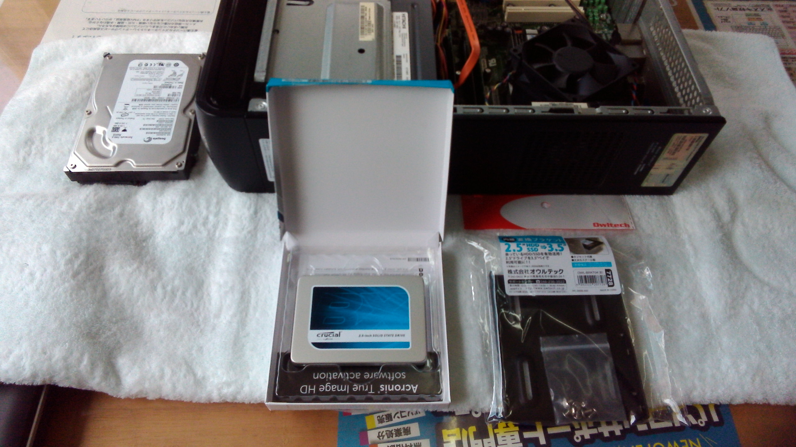SSDはCrucial製の「BX200 CT240BX200SSD1」ですが、デスクトップPCにはそのまま取付できないので別途に「3.5インチ変換ブラケット」を準備しました。