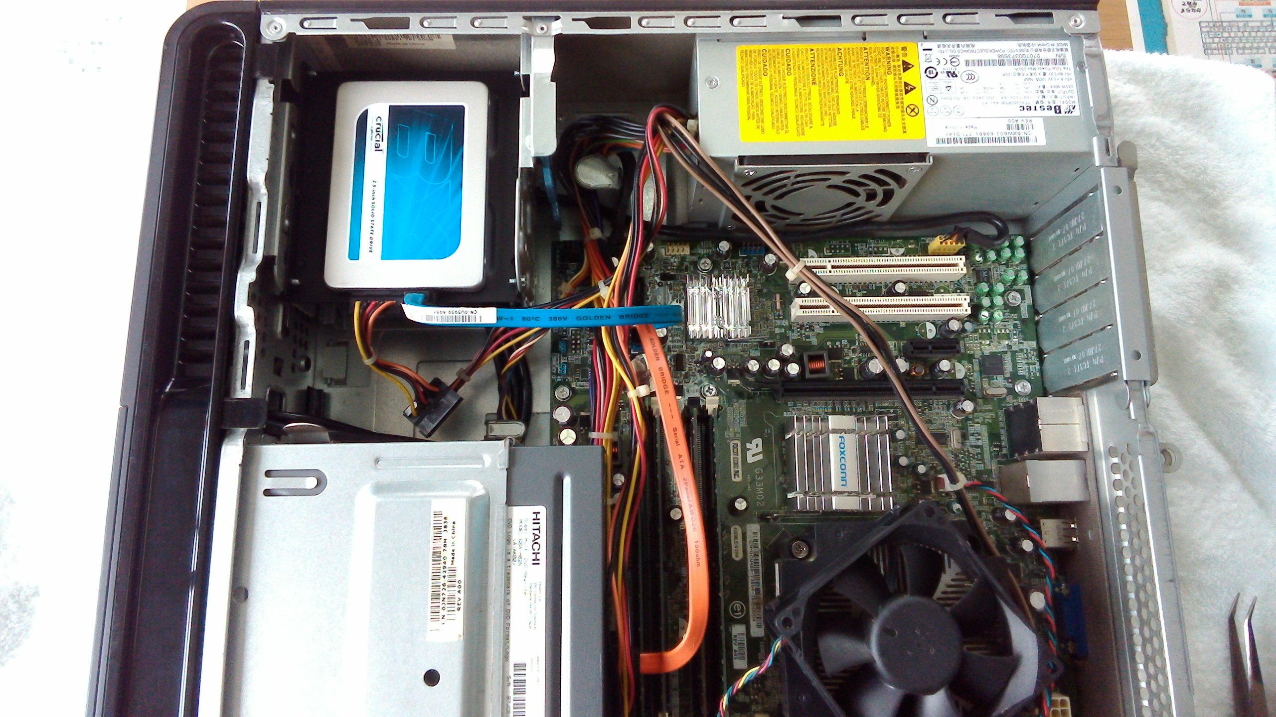 都城市横市町のお客様より内蔵ハードディスクをSSDに交換してほしいとご依頼がありましたので、お客様宅まで訪問しパソコンを拝見させて頂きました。お持ちのパソコンは「デル製のVostro 200」、元々のOSはWindowsXPだったそうですがWin7→Win10へアップグレード、さらにメモリ増設などもされたそうです。