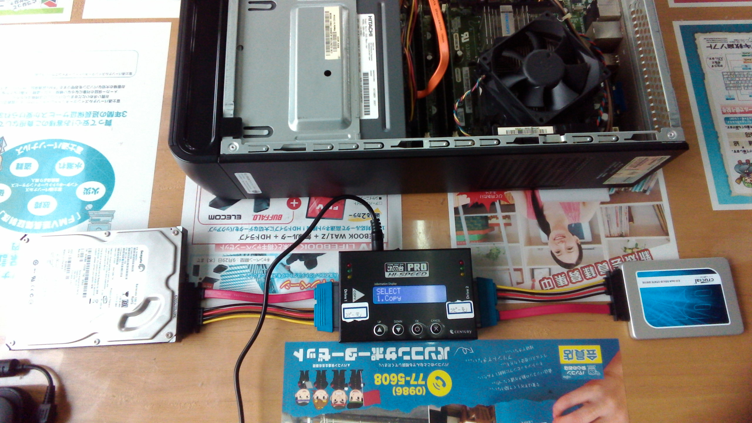 取り出したハードディスクとSSDをデュプリケーターに接続してクローンを作成します。クローン作成後はSSDも160GBの領域しか認識しない為、未定義領域を割り当てる必要があります。今回はパーティションサイズを変更して未定義領域を全てCドライブに設定しました。