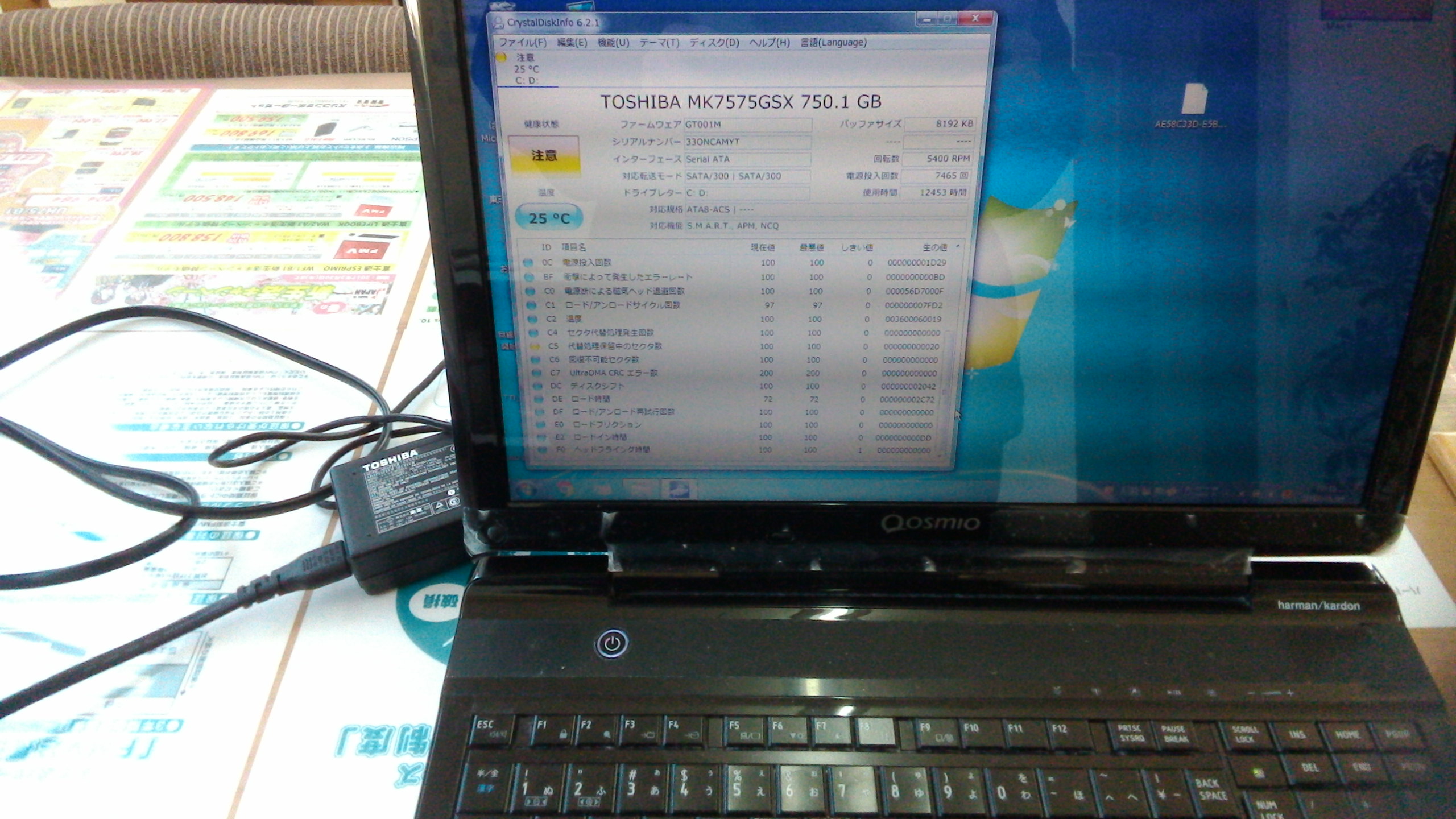 とりあえず時間はかかるがWindowsは起動できるとの事でしたのでHDDの健康状態を調べて見る事に…。