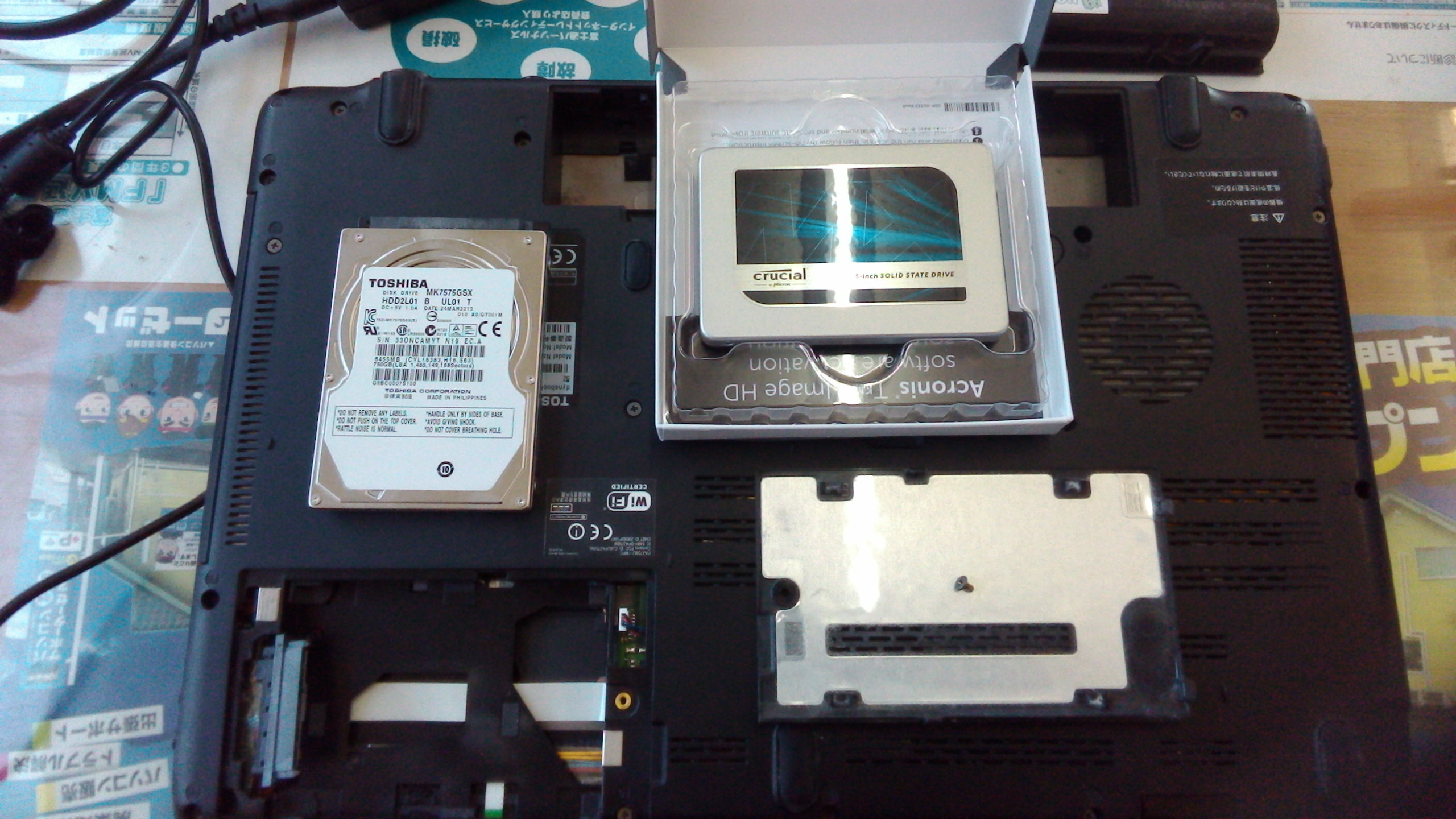 TOSHIBA Qosmio T750/T8B PT750T8BBFB HDDからSSDへ換装