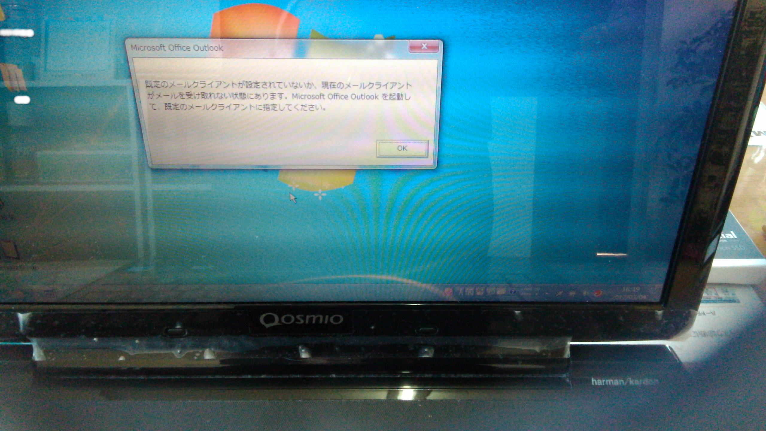 あともう一点依頼されていた起動後に毎回「Microsoft Office Outlook」のメッセージが表示されるとの事でしたので、そちらの方も修復していきたいと思います。