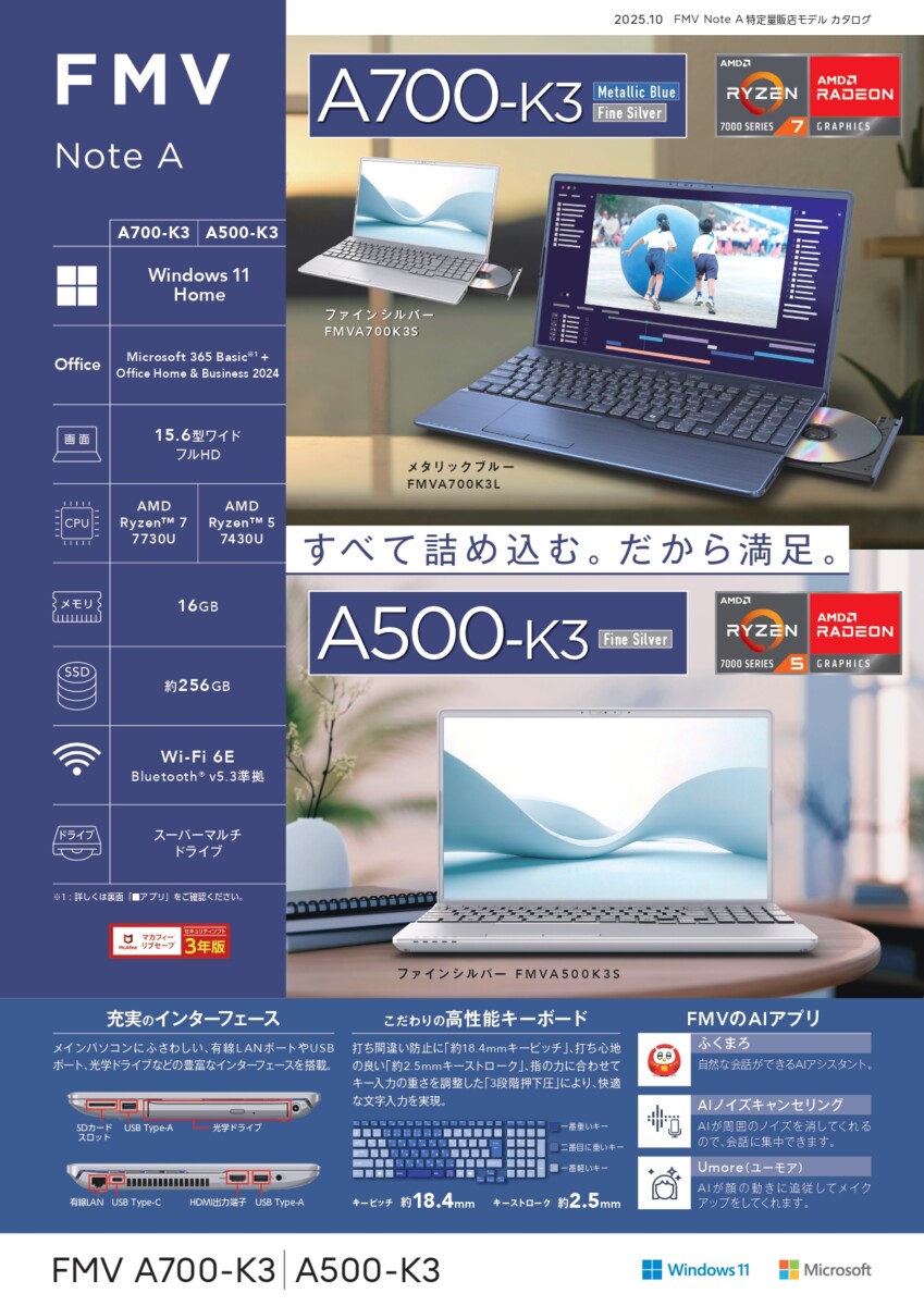 15.6型ワイド ノートPC FMV Note Aシリーズ